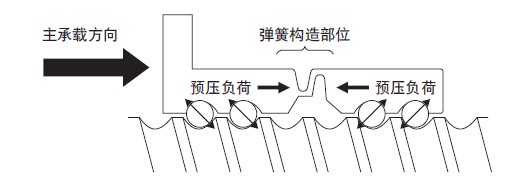 外部承載方向請按圖所示的主承載方向使用。當載荷作用方向與主承載方向相反時,會導致預壓消失、彈簧構造部破損,因此使用時外部載荷要在0.1×Ca以下。