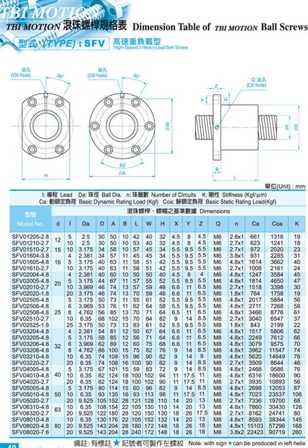 TBI滾珠絲桿SFV 型式(TYPE):SFV 高速重負載型: