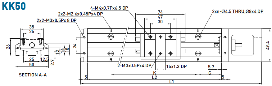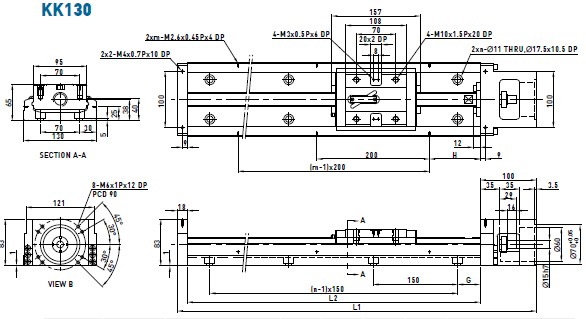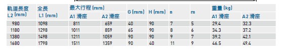 KK50導(dǎo)軌長度 : 150, 200, 250, 300。
